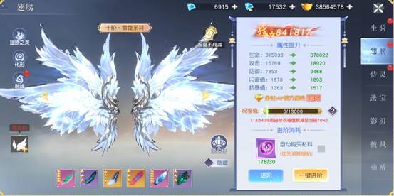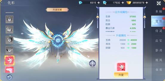 亲爱的上仙,小仙女这次给您介绍一下游戏里的翅膀系统,相信上仙已经拥有了属于自己的一双翅膀,不过有了翅膀可别忘了培养哦,因为翅膀形象可随升阶每一阶都有不同;可以选择心仪的酷炫外观,当属站街必备!